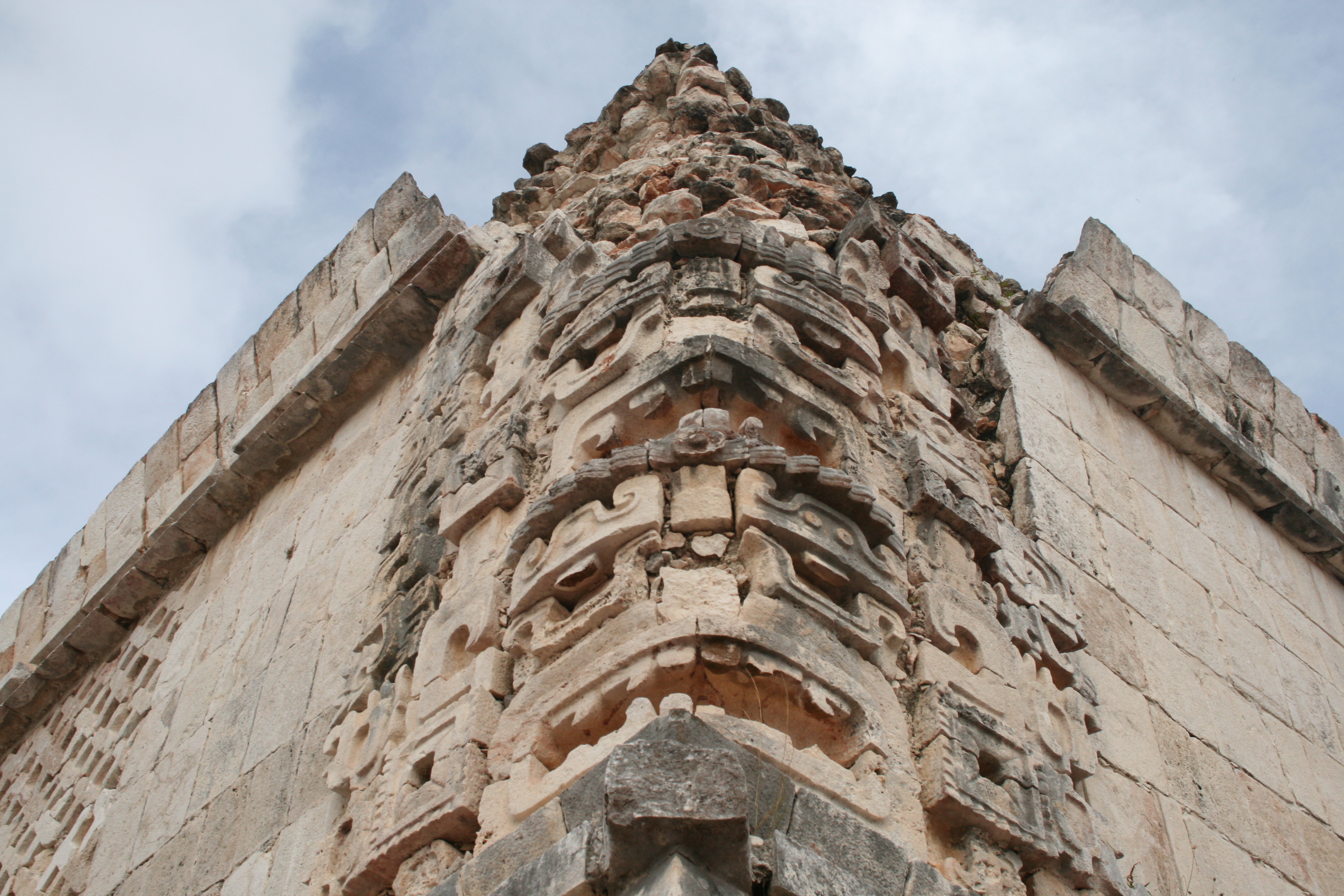 During the Postclassic Mayan Period, between approximately 800 and 1000 A.D., the center of Mayan urban development shifted to the northern Yucatán Peninsula of Mexico. Here a series of notable cities such as Uxmal, located in the Puuc Hills near modern-day Mérida, arose. The Yucatán cities of the Postclassic period had large central cores containing huge buildings with elaborate carved or plaster motifs repeated over and over on the masonry blocks. The so called Casa del Gobernador at Uxmal is 8 meters high, 12 meters tall and extends for almost 100 in length. It contains 24 chambers. The facade of the Casa del Gobernador is made up of limestone blocks with over 20,000 decorative elements such as the mask of the rain god Chac. To the east of Uxmal the Post-classic pyramid and its temple at Chichen Itza rises some 30 m above the huge central plaza. It is flanked by various stone buildings and a huge ball court. Cities such as Uxmal and Chichen Itza were smaller than the Classic Period cities such as Tikal and may have had a population of around 30,000.