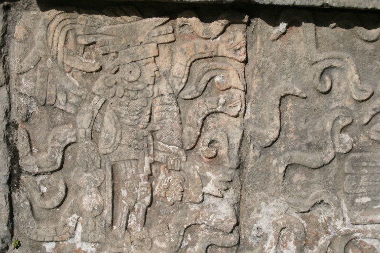 reflects both the original influence of the classical Mayan world and later elements of the massive stone architecture and symbolic carvings of the Toltec Empire, centered in the Valley of Mexico. The Toltecs arose in Mexico after the collapse of Teotihuacan. These Mexican related symbols include representations of the feathered serpent, Quetzalcoatl, crossed serpents and the Mexican rain god Tlaloc At Chichen Itza the Jaguar Temple contains clear Toltec symbolism including the Toltec Jaguar cult emblem. The precise political relationship between the Toltec Empire and the Yucatán Mayan cities of the Postclassic period is unresolved, but clearly there was a strong Toltec influence on the ruling class and symbolism of the cities.