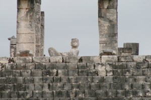 Like the Classical cities to the south – the great Post-classic Mayan cities of the Yucatán also came to an end. The cities appear to have engaged in warfare and petty city states arose and fell, in concert with a decline in architectural and construction quality. Imagery of warfare and human sacrifice abound in the carvings found at many Yucatán Mayan sites. Similar gruesome imagery is associated with the Toltec. The great city of Chichen Itza was destroyed by warfare about 1000 to 800 years ago, at about the same time as the Toltec capital at Tula and the Totec empire collapsed. There is evidence that drought and the displacement of nomadic peoples at the northern edges of the Toltec empire in Mexico may have driven this collapse. With the demise of the Toltec empire in Mexico, the influence of the Toltecs receded from the Yucatán. From the ashes of the Toltec legacy would arise the Aztec empire, but it did not reach into the Yucatán at the time of Spanish contact. Aridity, drought, soil depletion may all have affected the Postclassic Maya, but human conflict appears to have been the critical element at play in the Yucatán during the Postclassical Period.